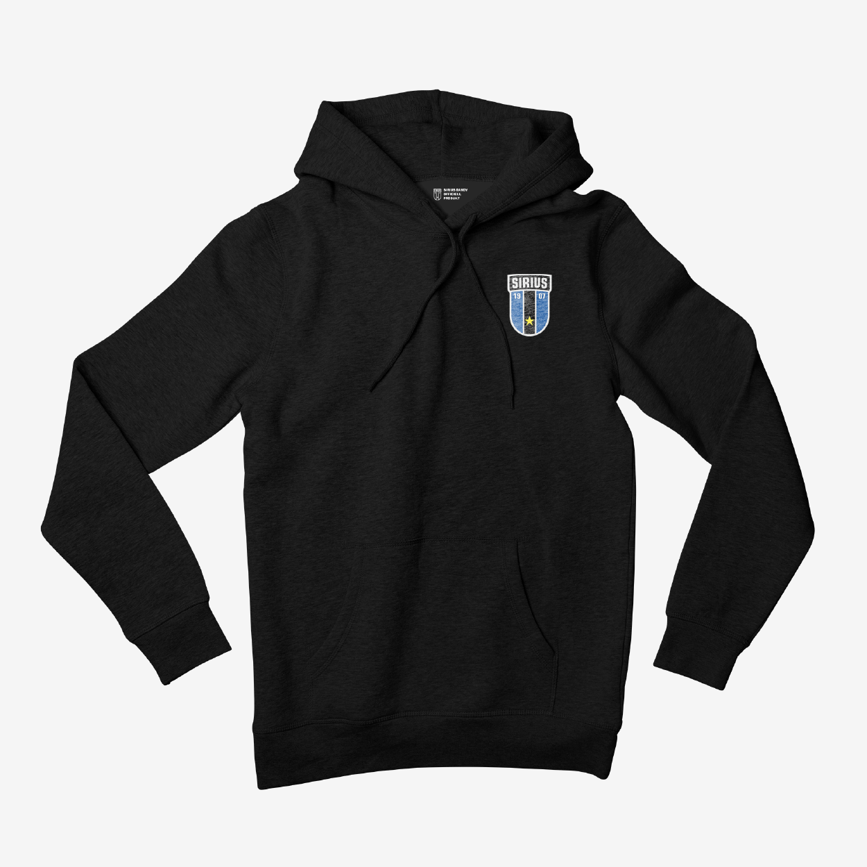 Hoodie med litet klubbemblem på framsidan. Produkten finns i färgerna svart, vit, marinblå och ljusgrå.
